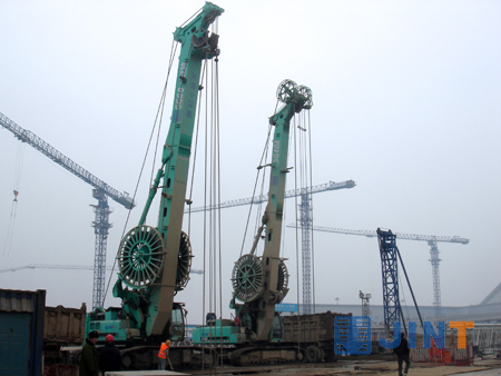 据工程指挥部有关人士介绍,滨海国际机场交通枢纽工程是天津市“十二五”期间重点建设项目,项目建成后将成为天津集航空、城际铁路、轨道交通、公路等多种交通方式为一体的综合性交通中心。由于项目工量大、工期紧、工程质量要求高,所以年初开工时,施工单位就调用了国内外多个厂家的基础施工设备,金泰SG系列抓斗凭借技术领先、性能卓越、品牌口碑俱佳等优势,以进场数量和型号最多、施工综合效率最高的评价结果令竞争对手黯然失色,成为这场“竞赛”的大赢家。据统计,目前已有8台SG抓斗在现场施工,型号涵盖金泰大功率抓斗的全部主流产品,随着工程进度的加快,后续还将有设备陆续进场。