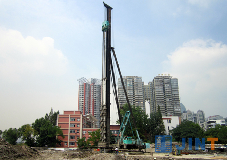 金泰公司ZKD系列多轴钻机是使用SMW功法加固软土地基的施工设备,适合在城市高层建筑、轨道交通车站和地下室的挡土及防渗连续墙施工,江河堤坝和水利水电施工中防渗及软土地基加固等。此系列设备具备多种优势:(1)采用多轴钻进,施工效率高;(2)工作稳定,导向可靠,成槽精度高,垂直度控制在0.2%以内;(3)能力强大,加固深度达30米,厚度0.36——1.0米,对复杂地层有很强的通过能力;(4)多对螺旋叶片,有效搅拌软土和固化剂,使槽孔上下均匀,密度一致,提高墙体强度和防渗能力;(5)施工过程无振动、低噪音、无环境污染,无侧向挤压,对邻近建筑物影响小等。