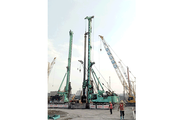 广州白云站(棠溪站)于2019年1月开工,是集各种方式一体化换乘的综合交通枢纽。此次工程量大,施工难度大,技术要求高且项目地层极其复杂,0~5米回填层,5~12米中粗砂层,12~13米中风化灰岩,13~15米溶洞,15~24米微风化灰岩,24~27米溶洞,27~46微风化灰岩。据现场所悉,自施工以来现场大部分旋挖设备快的四五天一根桩,慢的十多天一根,其中有些旋挖设备一个月三根桩都无法完成。金泰SH46A虽进场最晚,但目前已完成2根1.5孔径的桩,平均每80小时完成一根46.8米的桩(入岩27米),超过大部分同场设备。除此以外,金泰SX40A双轮铣在现场也表现不俗,在抓斗、旋挖、双轮铣组合工艺下,每7天左右完成一幅宽1.2米、长6米、深37米的槽,较现场同类产品早5~7天完成施工,赢得用户以及行业专家的高度评价。与此同时为了更好的服务用户,上海金泰广州分公司的售后服务人员专门蹲点,为现场的设备保驾护航,只要客户需要,将第一时间为客户排忧解难。